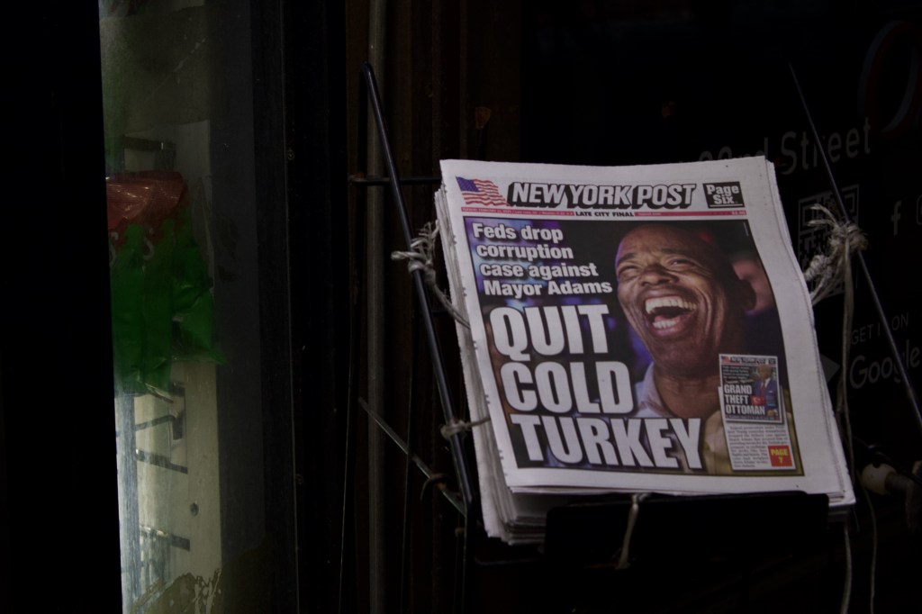 A bodega newsstand carries the Feb. 11, 2025 issue of the New York Post, featuring incumbent Mayor Eric Adams on its cover, in midtown Manhattan, Feb. 11, 2025Newscasters position microphones to capture mayoral candidate answers at the United Coalition of Democratic Downtown Clubs Mayoral Candidate Forum in downtown New York, Feb. 11, 2025Former New York City Comptroller Scott Stringer delivers his five-minute opener to local Democrats at the United Coalition of Democratic Downtown Clubs Mayoral Candidate Forum in downtown New York, Feb. 11, 2025Local Democrats graze on a crudite spread in between candidate remarks the United Coalition of Democratic Downtown Clubs Mayoral Candidate Forum in downtown New York, Feb. 11, 2025Hedge fund manager Whitney Tilson fields questions on his friendship with billionaire GOP megadonor Bill Ackman during the United Coalition of Democratic Downtown Clubs Mayoral Candidate Forum in downtown New York, Feb. 11, 2025New York City Comptroller Brad Lander speaks to voters online and in-person during the United Coalition of Democratic Downtown Clubs Mayoral Candidate Forum in downtown New York, Feb. 11, 20256-year-old Haisley asks State Sen. Jessica Ramos what she will do to prevent ICE from entering schools during the United Coalition of Democratic Downtown Clubs Mayoral Candidate Forum in downtown New York, Feb. 11, 2025State Sen. Jessica Ramos speaks with members of the NYU College Democrats outside of the United Coalition of Democratic Downtown Clubs Mayoral Candidate Forum in downtown New York, Feb. 11, 2025